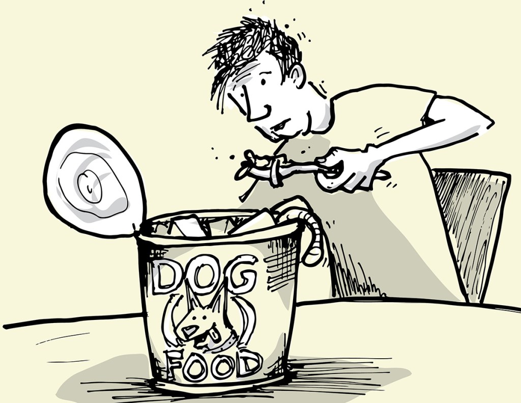 When I was a kid there was a PSA that played during Saturday morning cartoons about illiteracy. The guy on screen really needed some food but couldn’t read the cans in the grocery store. In a tragically sad moment of hey-kids-you-better-study-hard-in-school the poor old man bought dog food instead of people food. I always imagined him that evening sitting at his table forced by hunger to eat the dog food.