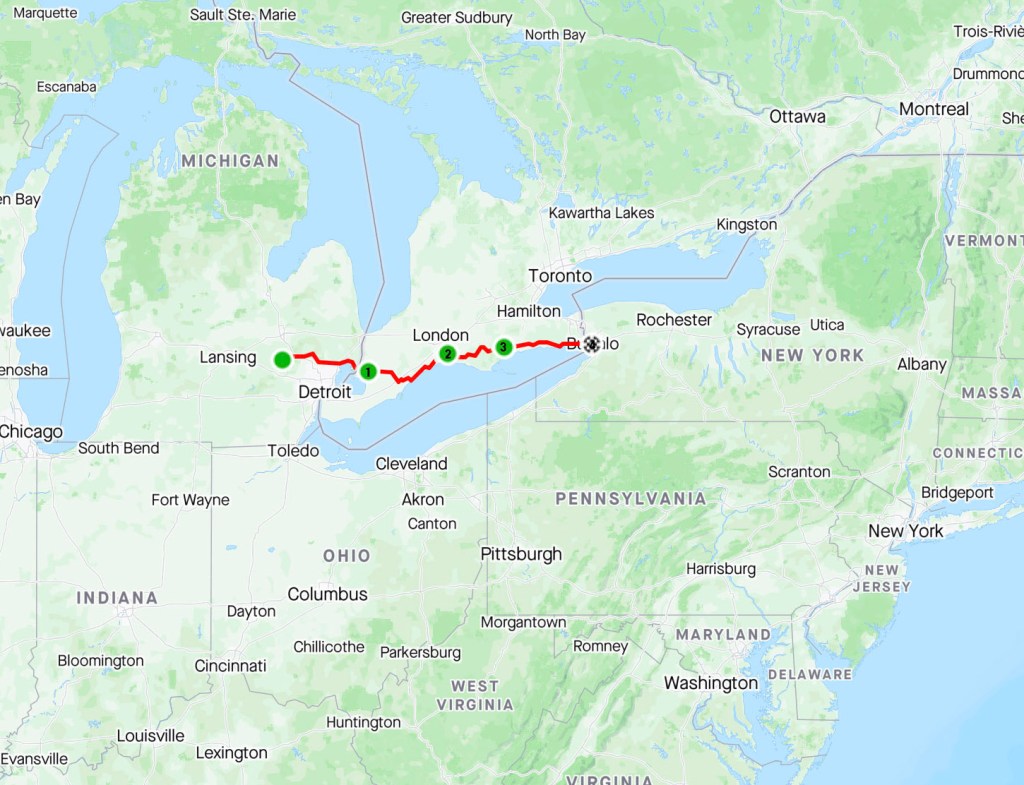 After the wait at customs riding through downtown Buffalo was easy. I was arriving at the end of the work day and the place was emptying out as quickly as it could. Everything looked closed and the streets were empty except for the handful of unhoused folks left behind. One man was shouting his F-yous to the world at the top of his lungs in a heartbreakingly out of control tirade. How do I help someone like that? Like everyone else I shamefully put my head down and rode past hoping he wouldn’t latch on to me. Found one pizza place open that played Props rock, did some laundry in the actual laundry machines at my hotel and called it a night.