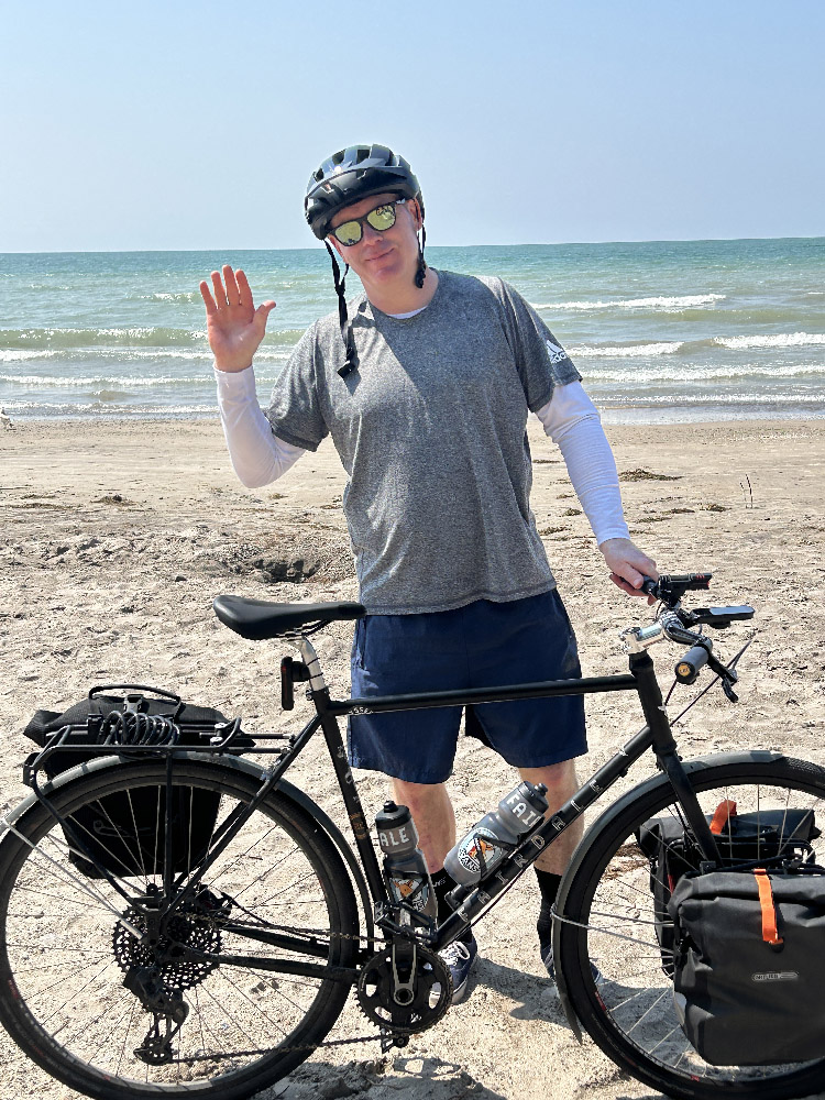 I followed the coast of Lake Erie for a while with beautiful sand beaches and holiday goers. First people I had seen riding bikes this whole trip (though they were in swimsuits with towels around their necks). At the public beach I took a break and jumped in the water and it was amazing after a long sweaty day. Lost my credit card in the water.