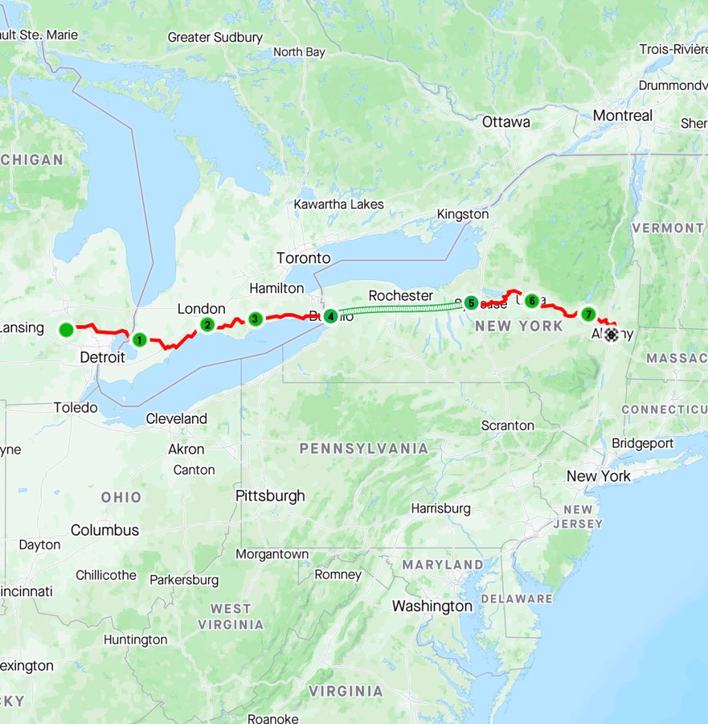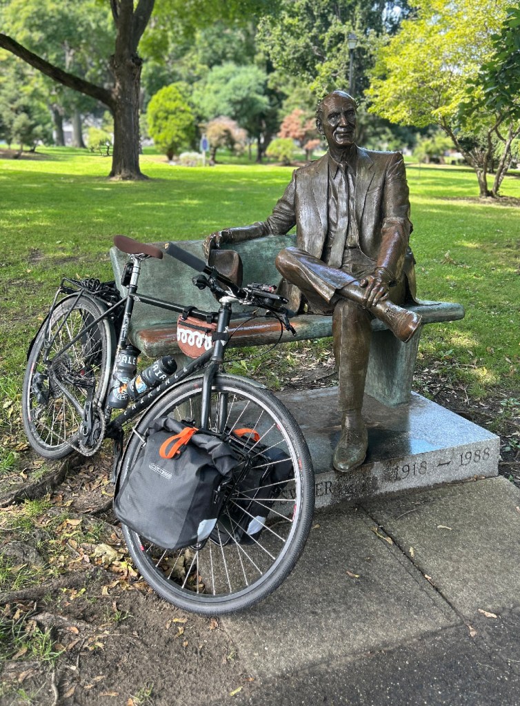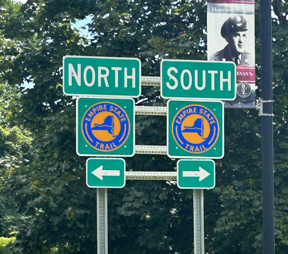 Out in the woods the day’s ride was extremely easy and pleasant. Thankfully there was a distinct lack of violence and people screaming for blood. The sun was out and the trail was smoothly paved. The weather was near perfect and folks I saw out on the trail mostly said hello and smiled back. I’m not sure how busy a trail needs to be before I’m allowed to stop saying hello to all the riders. For sure when there is only one every few miles you need to say what’s up, but when there is one every 100 feet or so? Following this thought line more I think there is a hierarchy, if I saw another person loaded up and touring like me I’d have to say hello no matter how crowded the trail is. If the trail was loaded with joggers I’d probably say hi to a lone cyclist, and if the trail is mostly empty I’ll say hello to anyone. There were also cute little rabbits hopping down the quiet parts of the trail but they don’t care if you say hi or not (but I did). I made really good time without even trying and somewhere above Albany I turned south to follow the Hudson River. This part of the Empire State Trail aims me towards the city.