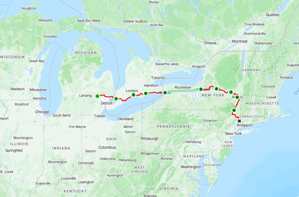 This section of the Empire trail was flawless. Paved and wide and pleasant to ride. We cruised along at an easy pace talking. I don’t see Kyle very much and I wasn’t around when he was growing up (him being 14 years younger than me) so there was plenty to learn about him. I was also paying close attention to his riding as I wanted to make sure I didn’t beat him up too badly on his first day. At one point the trail was closed and we were forced to follow a detour. It was a pretty poor detour shooting us out on to some very busy and dangerous roads. Unlike the flat rail trail we were following the roads were upstate NY hilly and challenging for someone who hasn’t been on a bike tour for the last 10 days. Kyle wasn’t enjoying this part but eventually we got around the closed section of trail and were able to join back up with the smooth and flat Empire State trail.