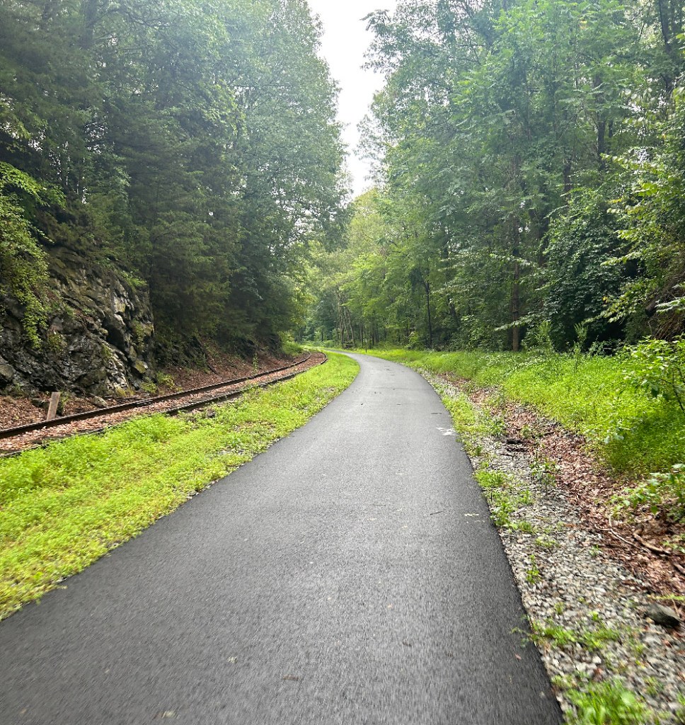 Out of Kingston the Empire State Trail picked up again and was mostly dirt/ muddy trail. It apparently had stormed hard because there was a number of trees down across the trail. This was proper old rail road tracks converted into trail so it was straight and level. The stickiness of the muddy trail slowed me down a bit but I cruised along without too much effort. My little brother Kyle was taking the train up from Brooklyn to the Poughkeepsie station and I was going to meet him there.