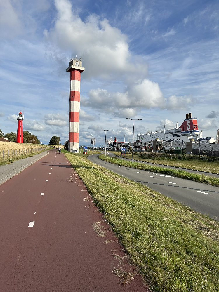 The ferry landed in Hook of Holland and after a slow moving customs line had been dealt with (bicycles wait in line with the cars) I was pedaling towards Rotterdam. It was now evening and the sun was low and throwing long shadows. The bike roads were the most perfect I’ve ever seen. Never a pothole or a crack, well signed, protected and simply the way you get around here. Loads of road bikers kitted up and checking watts on their bike computers zipped by. There was however an awful lot of people on motor scooters on the bike roads. Thanks to my head-on-a-swivel tourist wonder I nearly got hit from behind a few times. Nonetheless it was an easy and mostly calm 20 mile ride from the port into the city.
