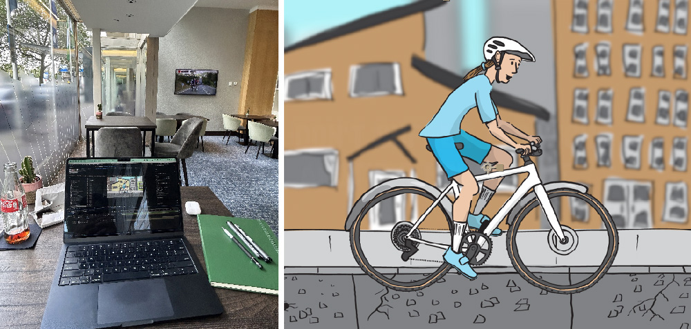 I have to remind myself occasionally that I’m not on vacation. The traveling around and staying in hotels feels like vacation but this is currently my life and I still have to work to be able to eat. Today I’m camped out in the hotel lounge drinking complimentary baby sized cokes, eating chocolate (thanks work), and revising an animation project. Being that I’m in Europe the Vuelta Espana bike race is playing on TV rather than people fighting each other. I like it here.
