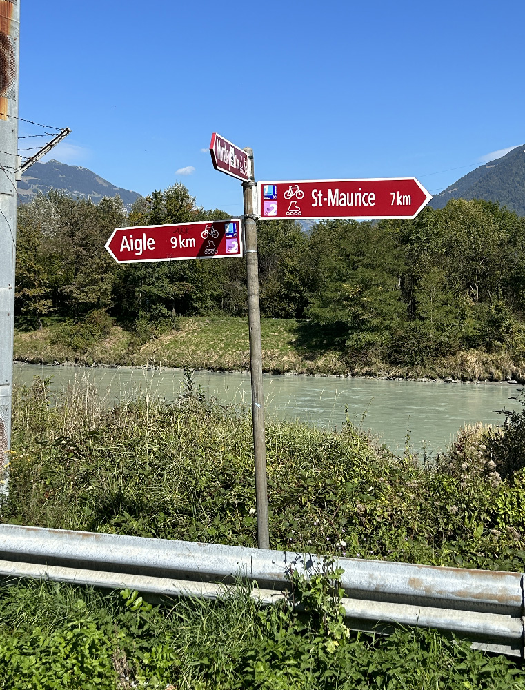 On the valley floor things were calm and flat. I made my way over to the Rhone river that runs through the middle and followed that towards Aigle. There is a bike trail running along the river and I’ve ridden this section before a few years ago on the Fairdale Over the Alps tour. It is also extraordinarily beautiful!