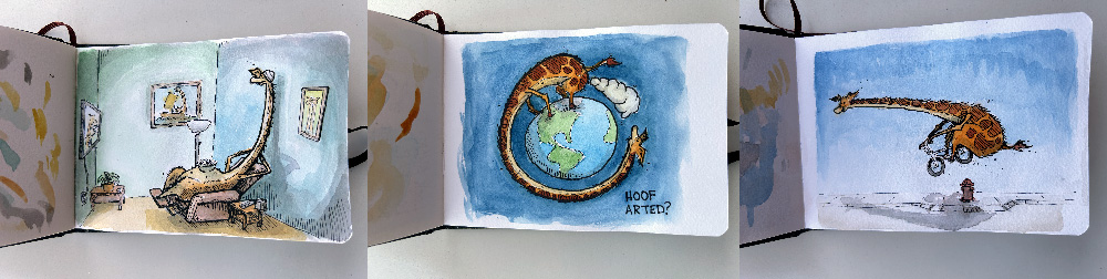 Fairdale work and my own projects are progressing along and taking unexpected exciting jumps in direction. My little watercolor travel set is in constant use filling my mini sketchbook with mindless cartoons too (I am convinced that I can keep creative momentum going by giving myself room to draw stuff I don’t put thought into). This probably doesn’t make for exciting blog reading as I’ve got no new amazing mountain scenery to share but the jumps in new ideas I’m making inside my mind are epic right now!