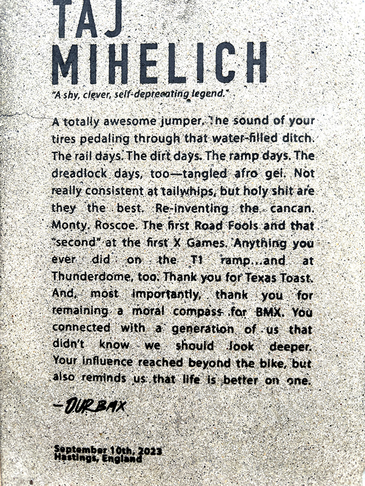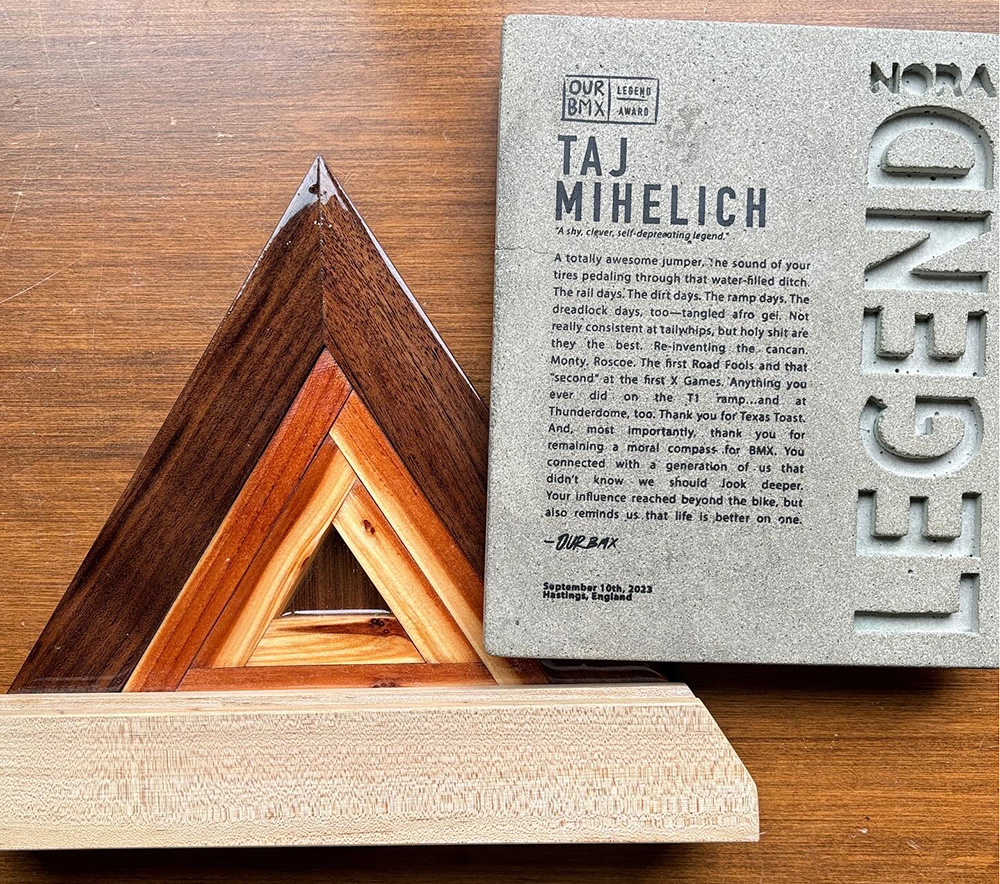 I’m visiting Michigan and finally got to sit down and look the award over (with my reading glasses). The custom stand is super cool and the text is so incredibly nice. Thanks so much OurBMX!