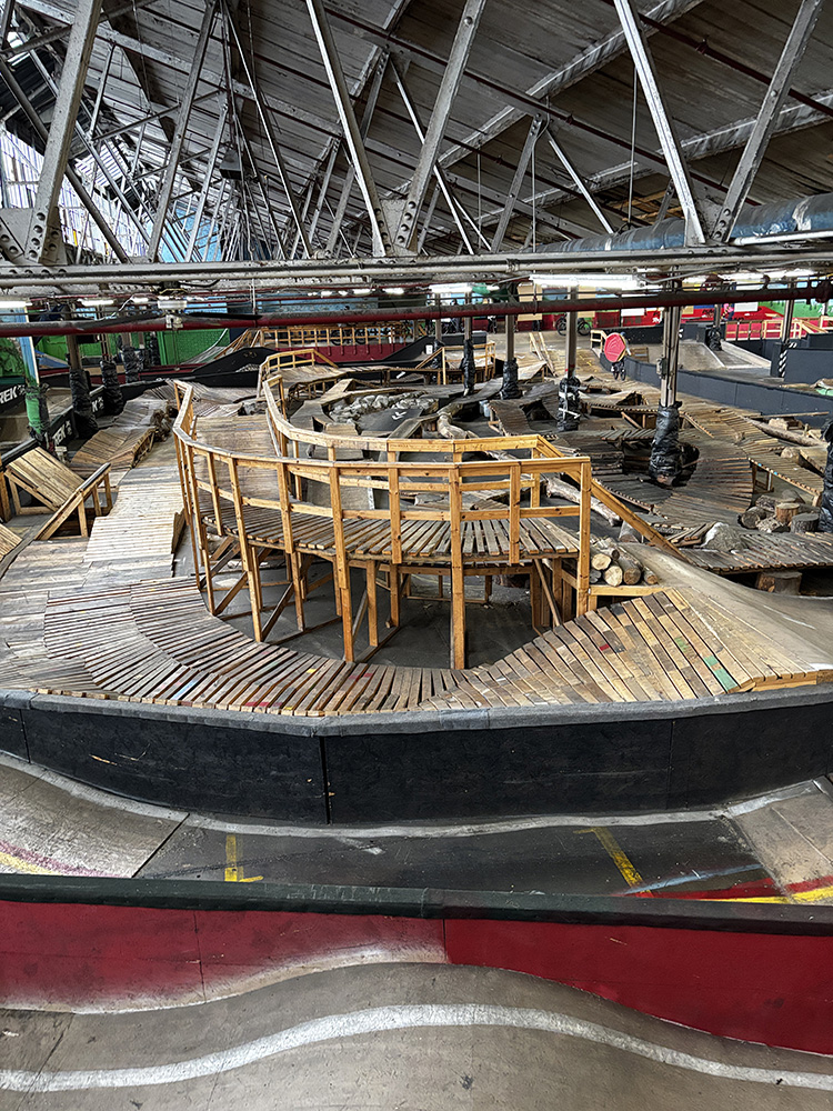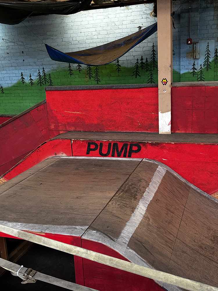 Ray’s is over 220,000 square feet of bike park now. All indoors. Traveling around the place I joke about how I wished my dirt jumper had water bottle mounts! There’s lines that take you up into the rafters, balance beams, foam pits, skateparks, hidden rooms, jump rooms and all kinds of pump tracks. Every time I’m there I marvel at the diversity of the riders. It’s set up kind of like a ski lodge with a big fireplace to lounge around near. Family’s show up, claim a picnic table and then head out to ride together. It is great to see kids, dads, moms, all smiling and having fun.